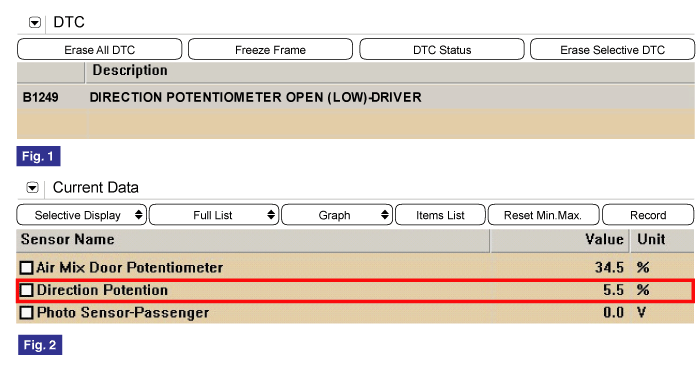 Direction Motor based on signal of A/C control unit. Pressing mode select