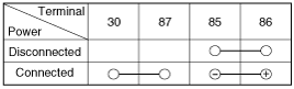 No.87 and No.30 terminals when power is disconnected.
