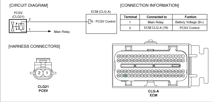 VERACRUZ(EN) >2011 > G 3.8 DOHC > Fuel System > Engine Control System > Purge Control Solenoid Valve (PCSV)>Schematic Diagrams