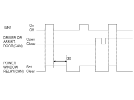 the POWER WINDOW RELAY CAN signal remains On for 30sec