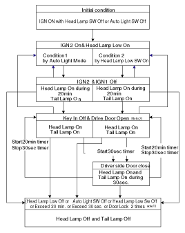 FOOT LAMP ON for 20min & IGN1=OFF &