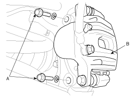 Install the brake caliper (B), then tighten