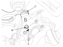 nut (B) and washer (C) from the front hub under applying the
