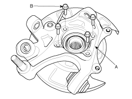 Remove the hub assembly mounting bolts (B)