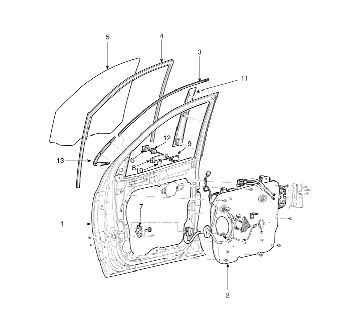 VERACRUZ(EN) >2013 > G 3.8 DOHC > Body (Interior and Exterior) > Exterior > Front Door>Components and Components Location