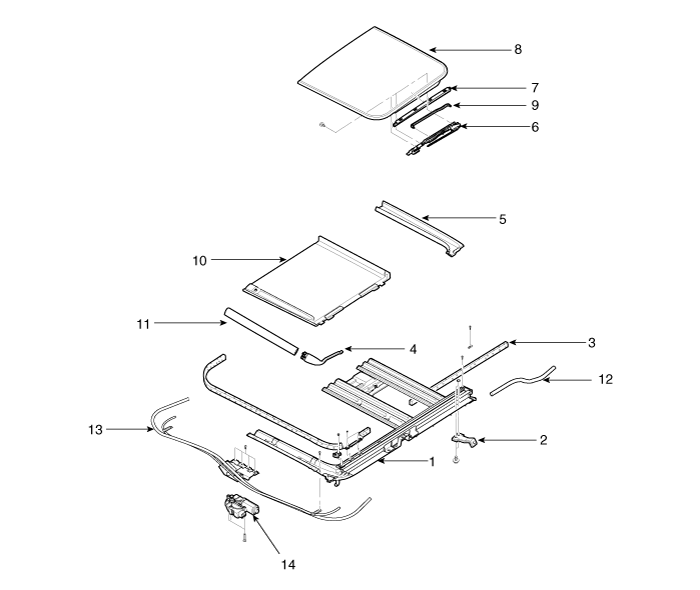 VERACRUZ(EN) >2013 > G 3.8 DOHC > Body (Interior and Exterior) > Exterior > Sun Roof > Sunroof Assembly>Components and Components Location