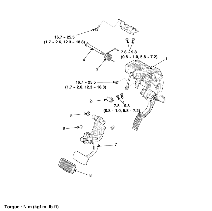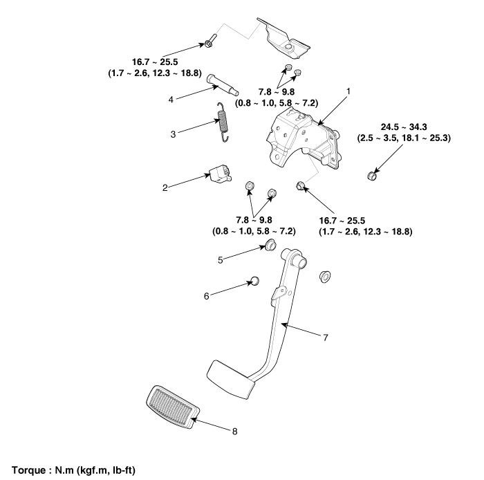 VERACRUZ(EN) >2013 > G 3.8 DOHC > Brake System > Brake System > Brake Pedal>Components and Components Location
