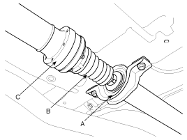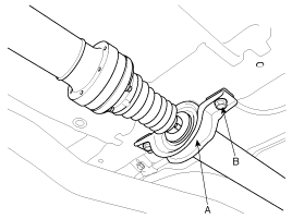 Check the center bearing (A) for excessives