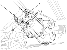 Check the CV joint (C) for excessive play or