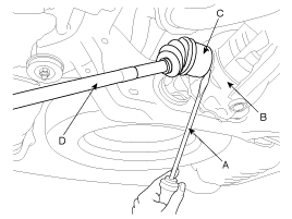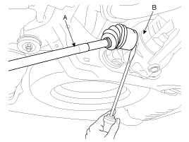 separate the driveshaft (B) from the axle hub (A).