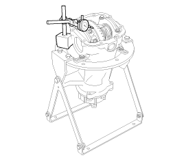 Fix the side gear with a wedge so it cannot move and measure the differential gear backlash with a dial indicator on the pinion gear.