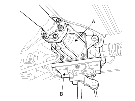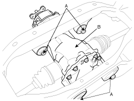 After loosen the differential mounting bolts (A), and remove the differential (B).