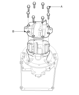 After loosen the cover bolts (A), and remove the differential cover (B).