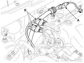 Remove the fuel hose(A) and PCSV(B) hose.