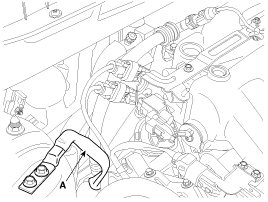 Disconnet the ground cable(A) from the engine mounting bracket.