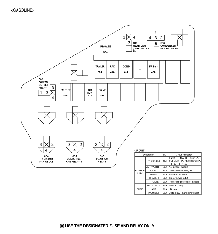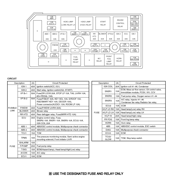 VERACRUZ(EN) >2013 > G 3.8 DOHC > Body Electrical System > Fuses And Relays > Relay Box (Engine Compartment)>Components and Components Location