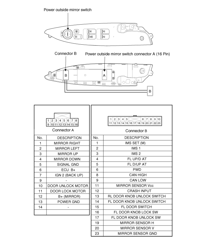 VERACRUZ(EN) >2013 > G 3.8 DOHC > Body Electrical System > Power Door Mirrors > Power Out Side Mirror Switch>Components and Components Location