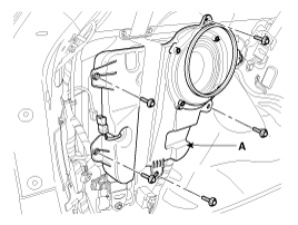 Remove the tweeter speaker (A) after loosening 2 screws and disconnecting the connector.